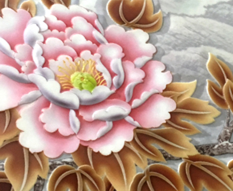 單層或多層白墨推測,最上層覆蓋彩墨,同步浮雕打印,浮雕效果精致,3d感突出