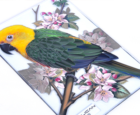 反向打印指在玻璃、亞克力等透明材料背面打印,正面顯示一種打印方式,可實現雙面成像效果,成像清晰。